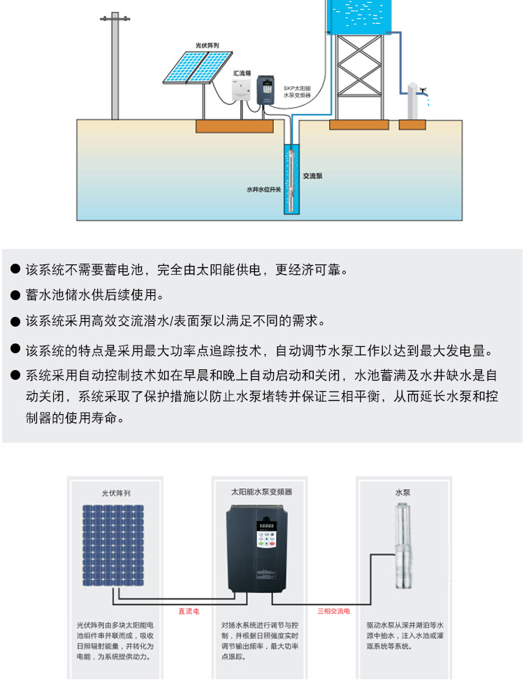 應(yīng)用行業(yè):廣泛應(yīng)用于陽(yáng)光充足、市電短缺的地區(qū),可以解決農(nóng)場(chǎng)灌溉、畜牧養(yǎng)殖、生產(chǎn)生活的用水問(wèn)題。